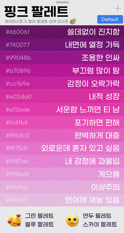 컬러 팔레트 테스트 후기 MBTI 링크